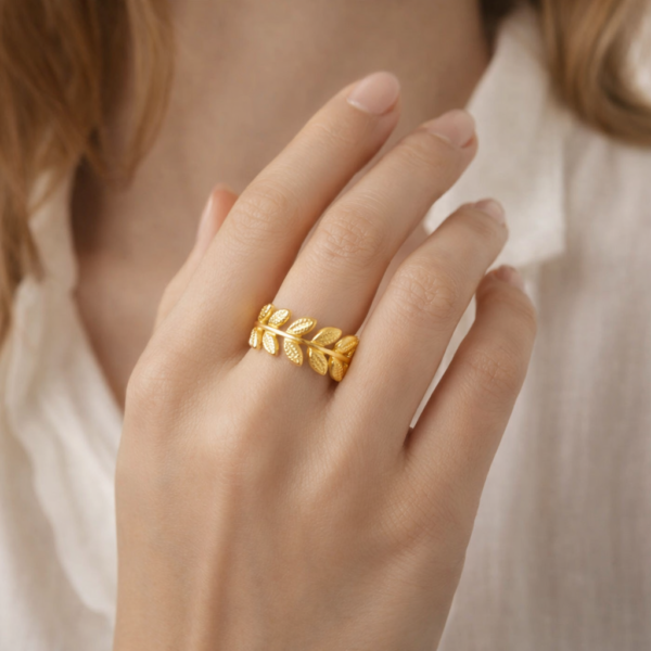 Elegant Leaf Design Anti-Tarnish Gold Ring for Women | Adjustable Minimal Ring