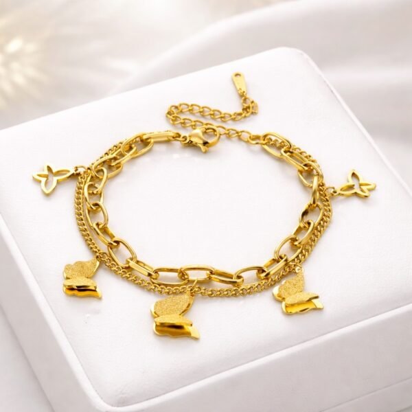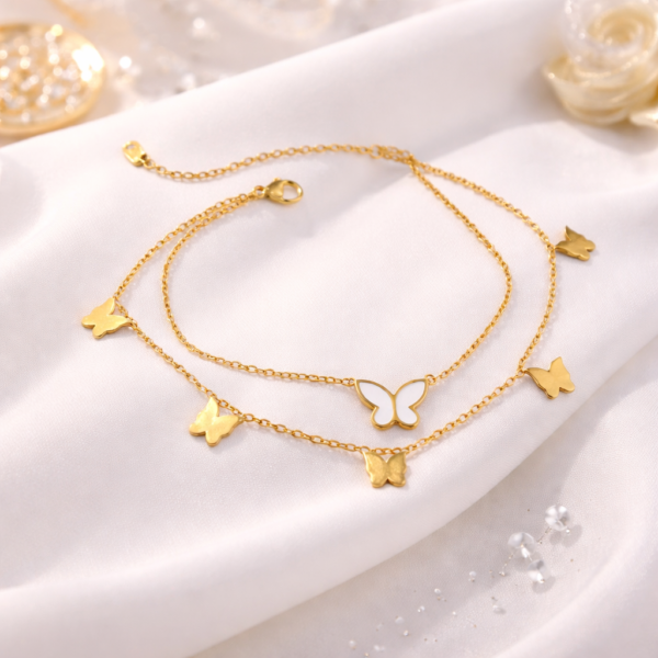 Butterfly Charms Two Layer Anti-Tarnish Anklet